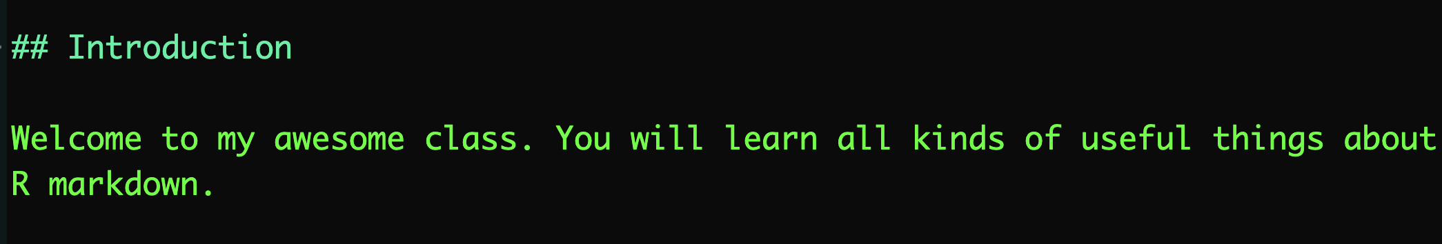 Welcome to my awesome class. You will learn all kinds of useful things about R markdown.